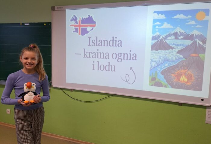 Martyna, kontynuując cykl lekcji odwróconych w klasie 3a, zabrała nas w fascynującą podróż na sam kraniec Europy – do niezwykłej Islandii. To właśnie dzięki jej zaangażowaniu młodsi koledzy i koleżanki mogli wyruszyć w edukacyjną wyprawę pełną odkryć i wrażeń. Uczennica przygotowała fantastyczną prezentację, dzięki której dzieci poznały to wyjątkowe miejsce. Opowiedziała o położeniu wyspy, wyjaśniła […]