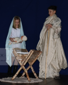 W piątek 22 grudnia 2023r uczniowie z naszej szkoły przedstawili jasełka, czyli widowisko o Bożym Narodzeniu. Pierwsze jasełka zaaranżował św. Franciszek z Asyżu w 1223r. w Greccio.W 800- setną rocznicę jasełek część uczniów z klasy IV a, IVb, VIa i klasy VIII starało się przybliżyć ważność dla Nieba i Ziemi tę ciszę betlejemskiej nocy oraz radość z Narodzin Bożej Dzieciny. Uczniowie pięknie angażowali się nie tylko w przygotowania ale również w samo przedstawienie. Uczennica IVb Aleksandra Piechota swoim śpiewem przeniosła nas w świat zadumy, zamyślenia.