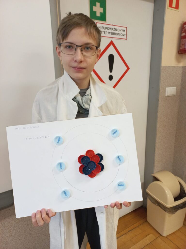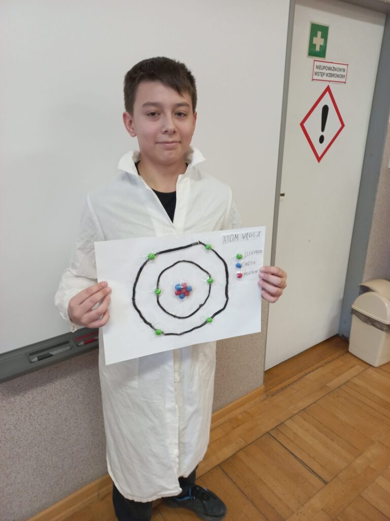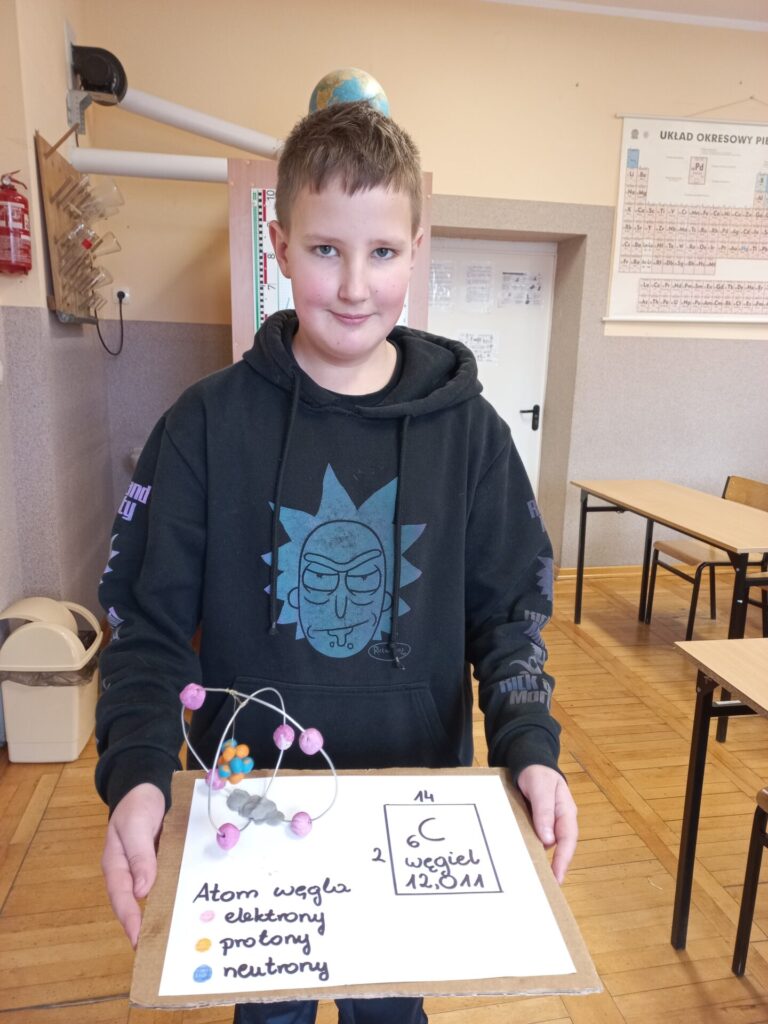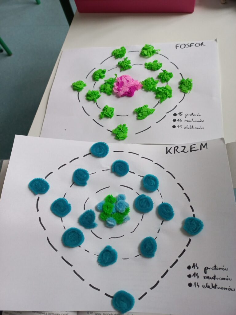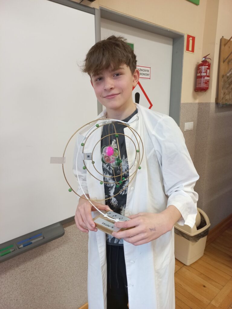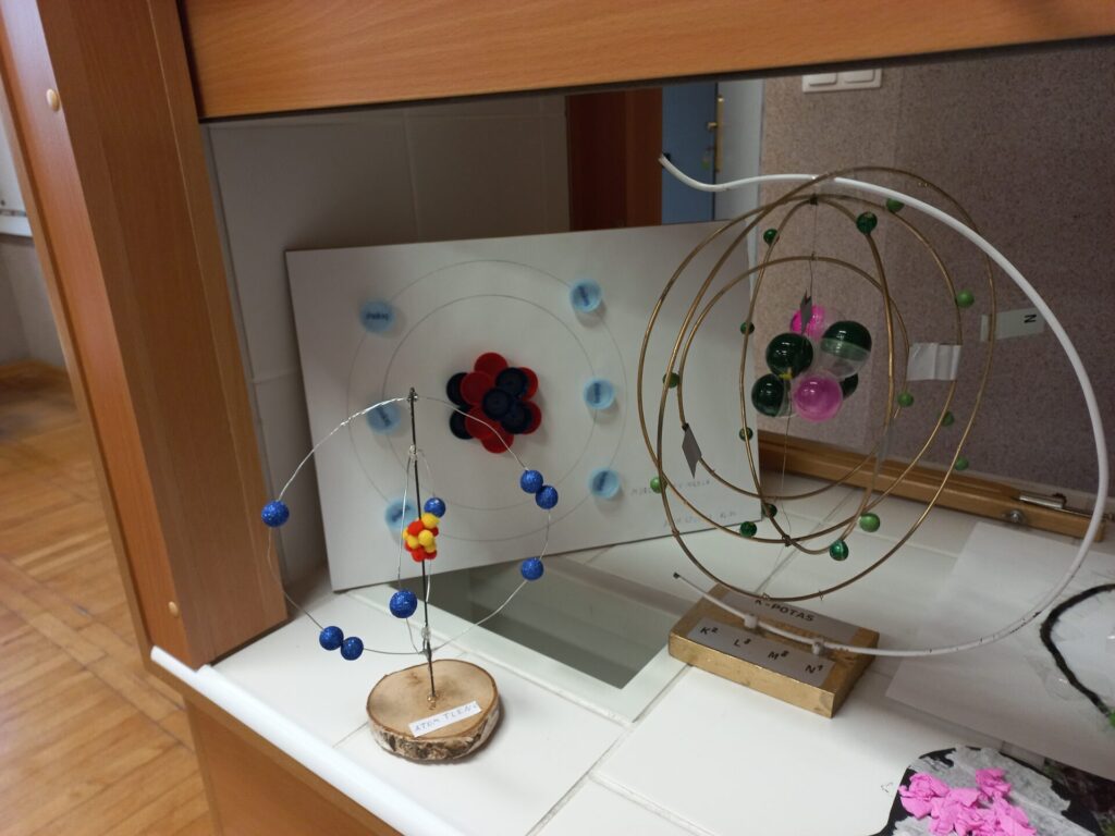 Uczniowie z klasy siódmej przygotowali uproszczone modele atomów pierwiastków chemicznych a szóstoklasiści piękne motyle z takich substancji, które akurat mieli „pod ręką”. Wyszło pięknie!!!
