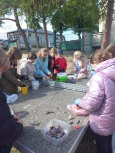 W związku z obchodzonym 22 kwietnia Międzynarodowym Dniem Ziemi w naszej szkole odbyło się mnóstwo ciekawych zajęć: sadziliśmy kwiaty, projektowaliśmy koszulki, wykonywaliśmy ekologiczne kosmetyki, a także nieszkodliwe dla środowiska i ekonomiczne detergenty do zmywarek. Przez cały tydzień odbywały się również warsztaty ekologiczne. Uczniowie wzięli udział w konkursie na rzeźbę recyklingową a na boisku szkolnym utworzyliśmy „żywy” obraz. Na podsumowanie rysowaliśmy całą szkołą plakaty i życzenia dla Ziemi. Chcieliśmy przypomnieć jak ważne są postawy proekologiczne i ochrona środowiska. Obchody Dnia ziemi to dobry czas na refleksję, uważność, na kształtowanie dobrych nawyków, które powinny wpisać się w naszą codzienność!