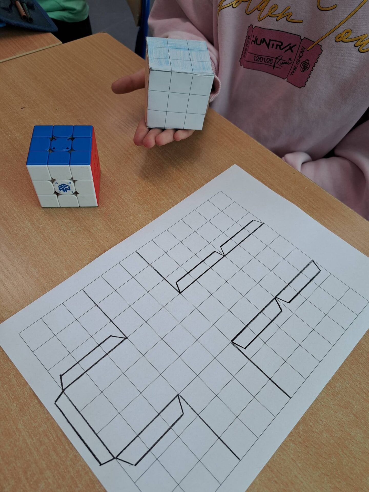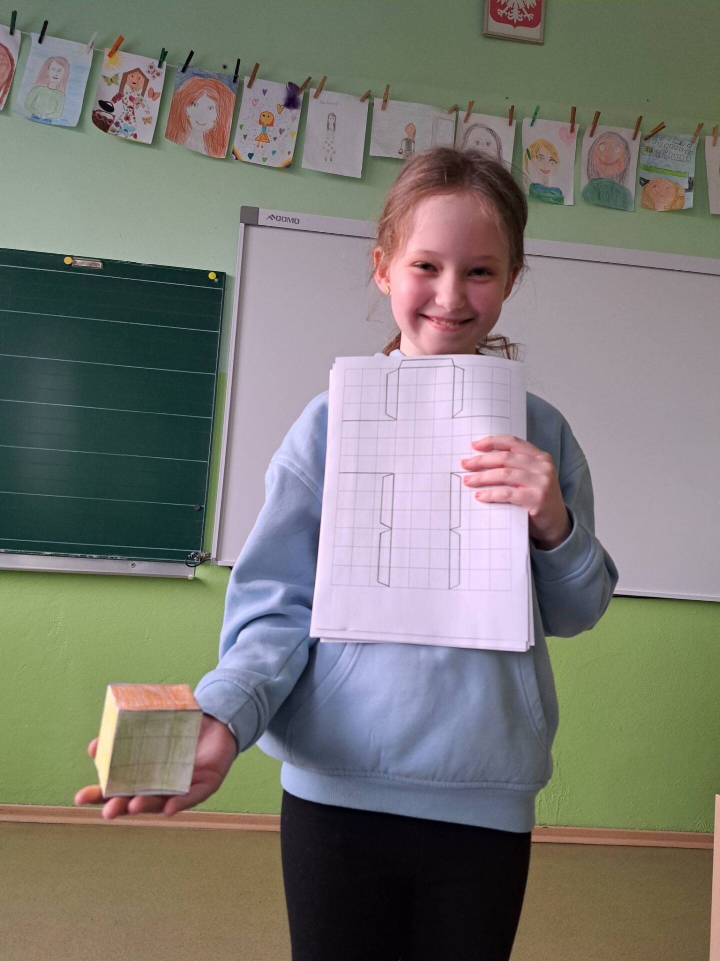 Na zakończenie uczniowie wykazali się wyobraźnią przestrzenną, kodując papierową kostkę 3D – a efekty ich pracy były imponujące!