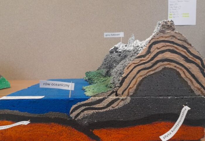 „Ziemia ciągle się zmienia” Aby lepiej zrozumieć procesy zewnętrzne i wewnętrzne zachodzące na naszej planecie, uczniowie klasy 7 wykonali modele geograficzne, które przedstawili i omówili na lekcji swoim rówieśnikom.
