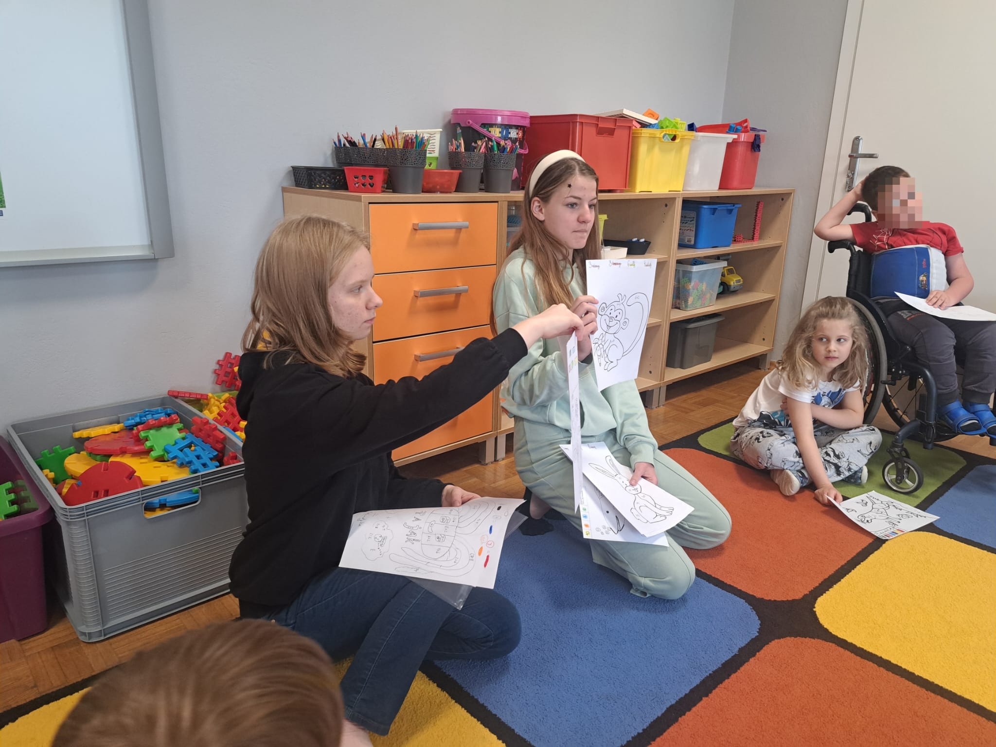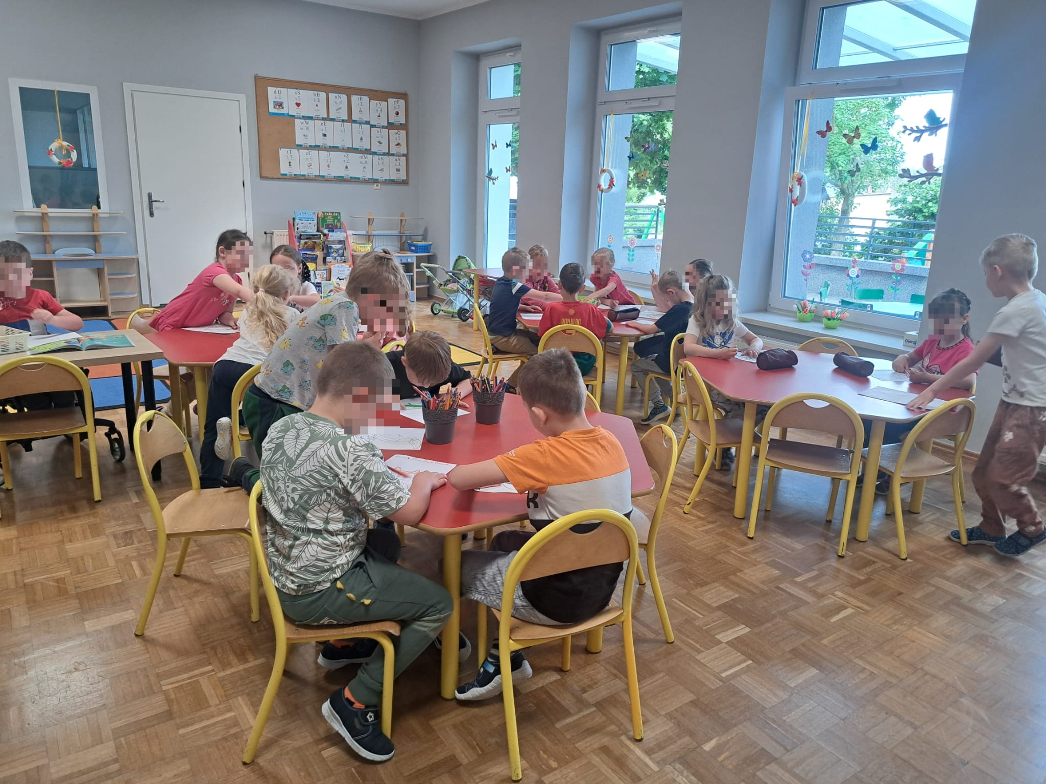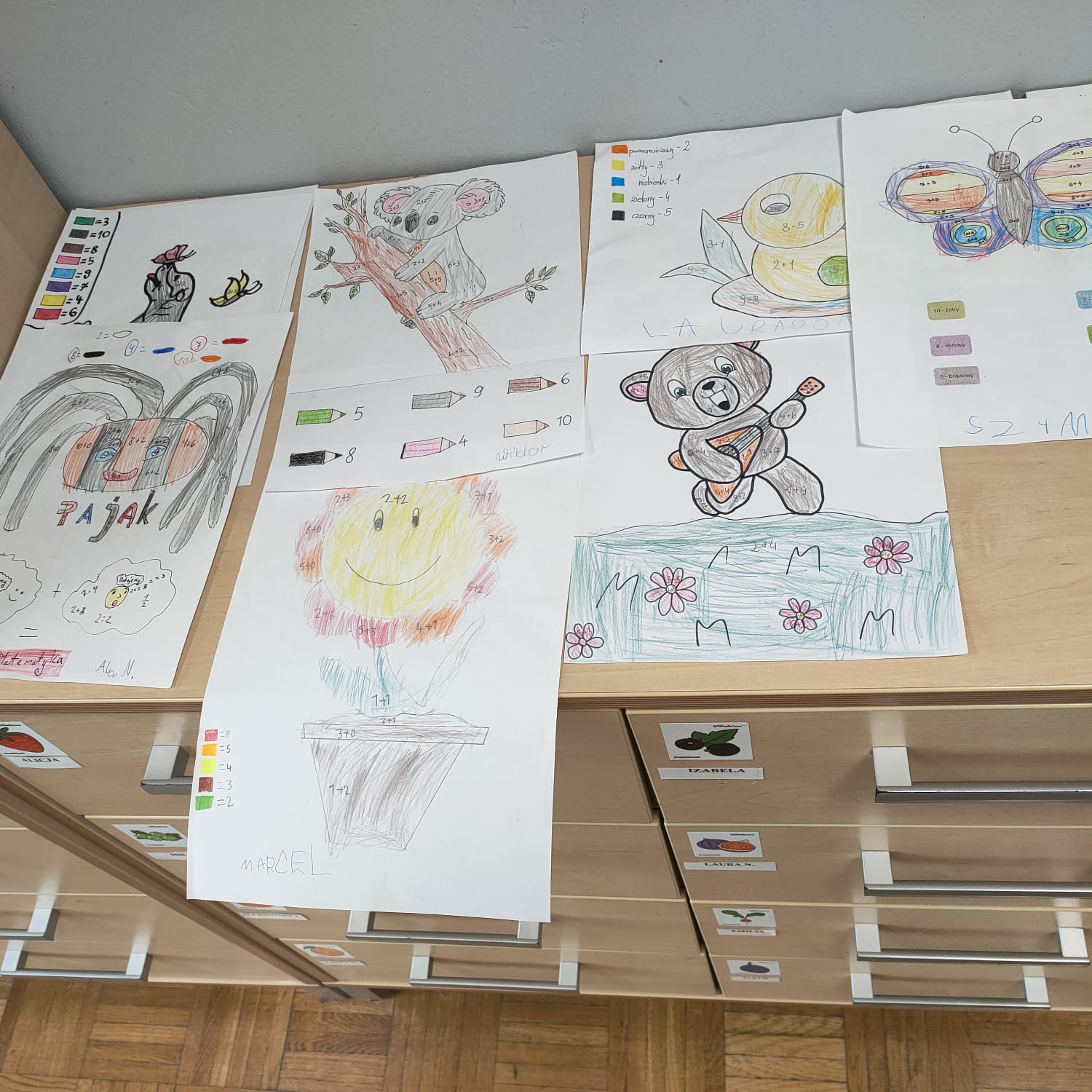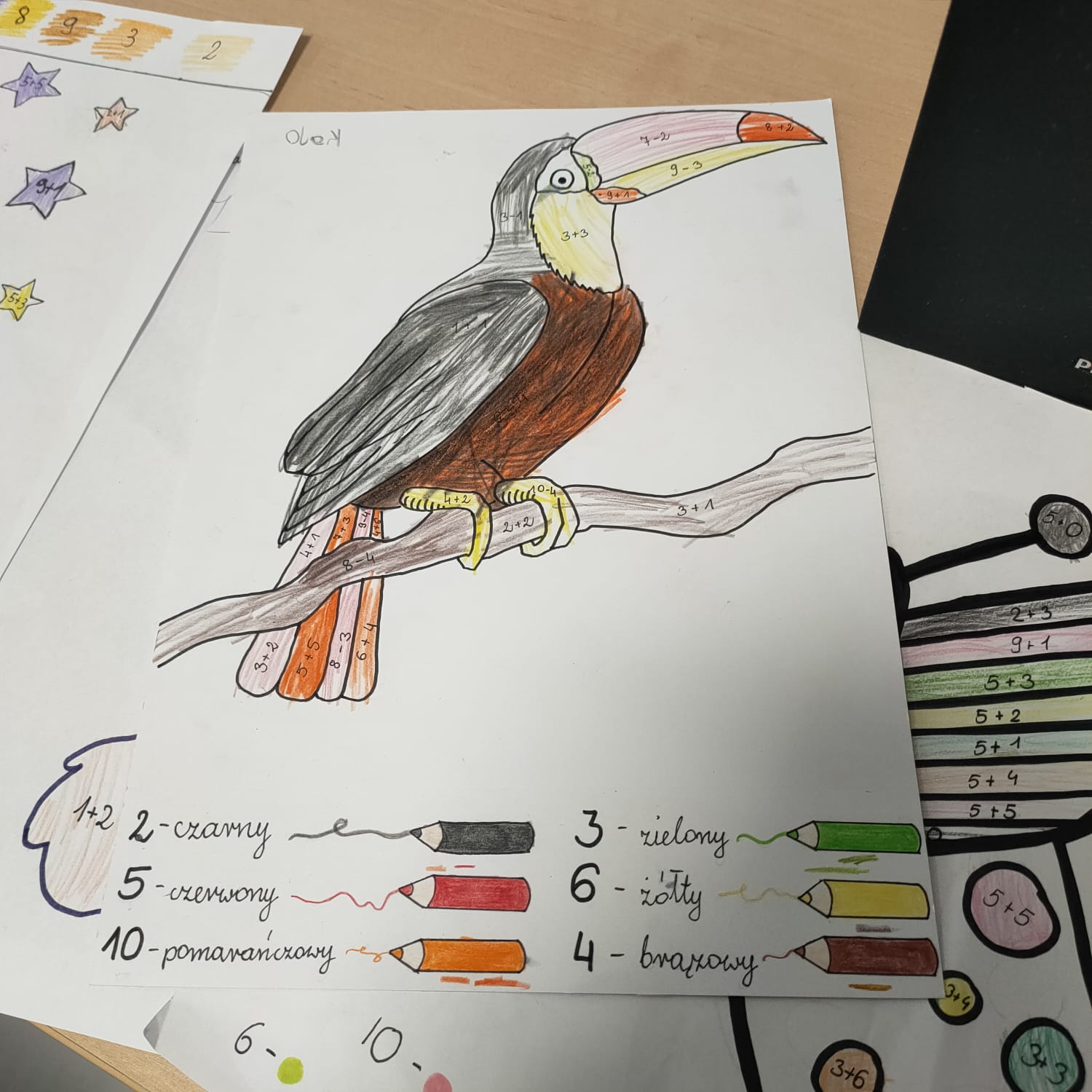 wykonali podczas zajęć. Dzieci mogły wybrać kolorowankę z motywem ulubionego pupila. Każdy ochoczo usiadł do stolika, aby dokonać działań (dodawanie w zakresie 10).
