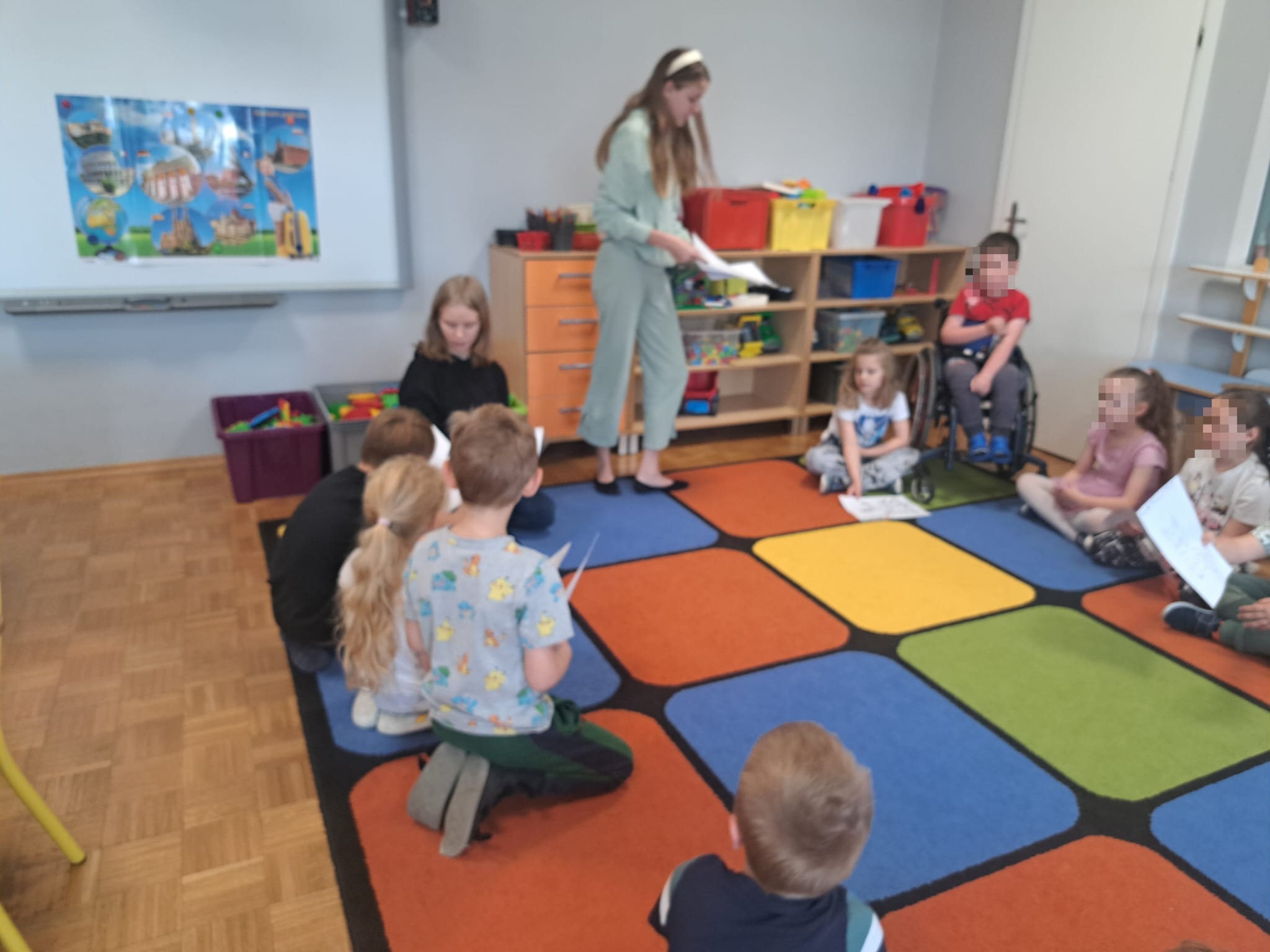 Publiczne Przedszkole w Prószkowie. W imieniu swojej klasy wręczyły przedszkolakom, matematyczne kolorowanki, które szóstoklasiści