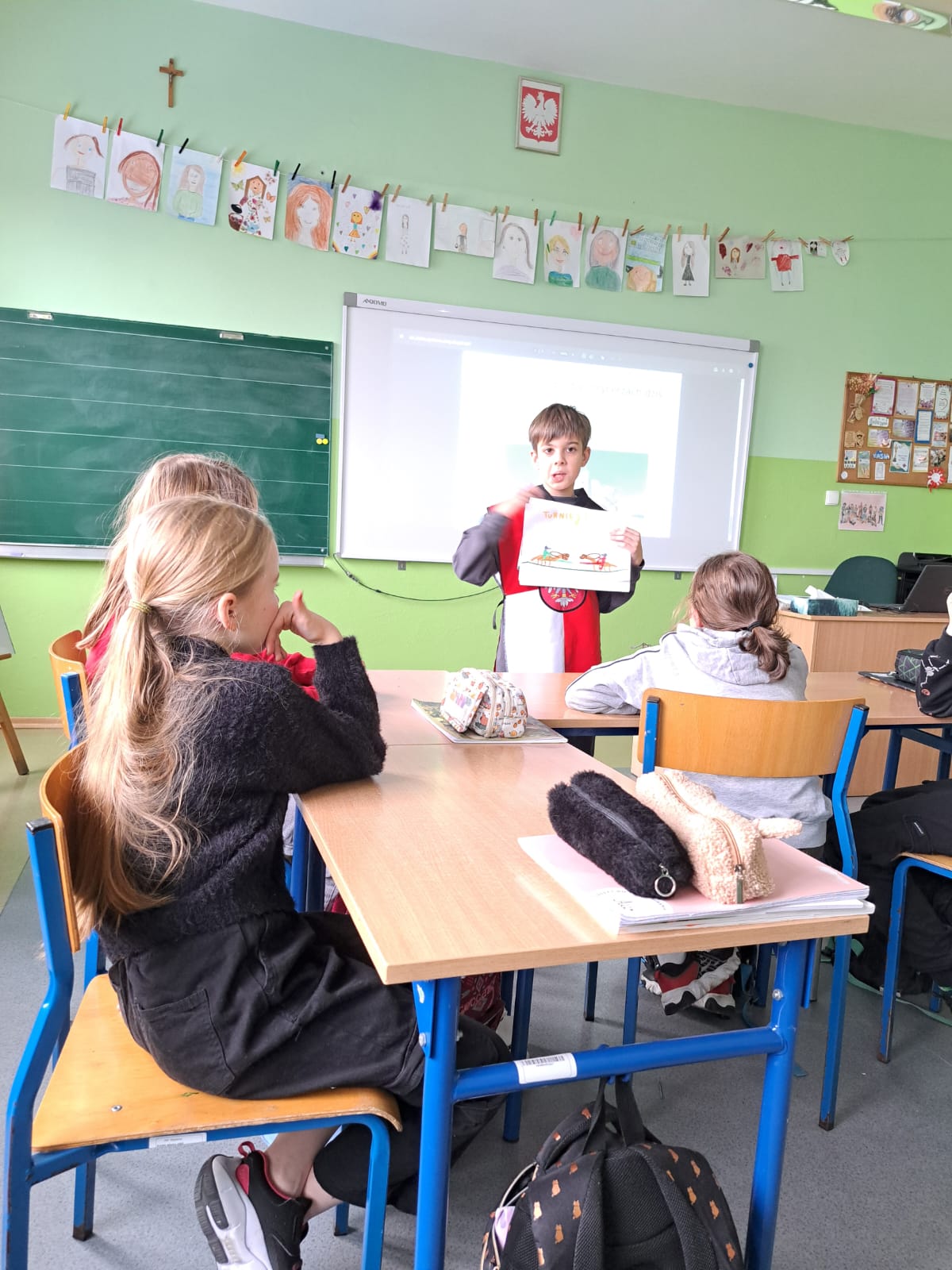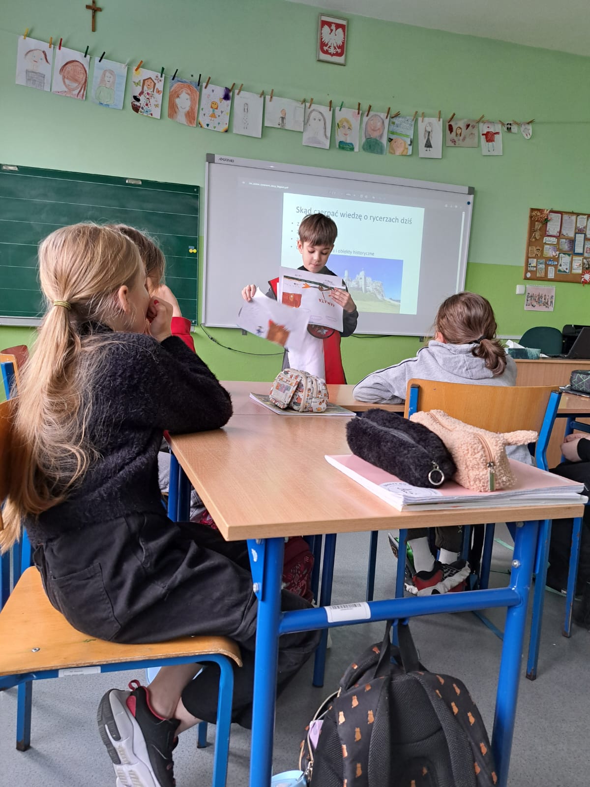 W klasie 3a lekcję odwróconą (czyli taką, w którą to uczeń wcielił się w rolę nauczyciela) poprowadził dzisiaj Jurek. Zajęcia przeniosły nas w fascynujący świat dawnych zamków i rycerzy, budząc duże zainteresowanie i zaangażowanie całej klasy.
