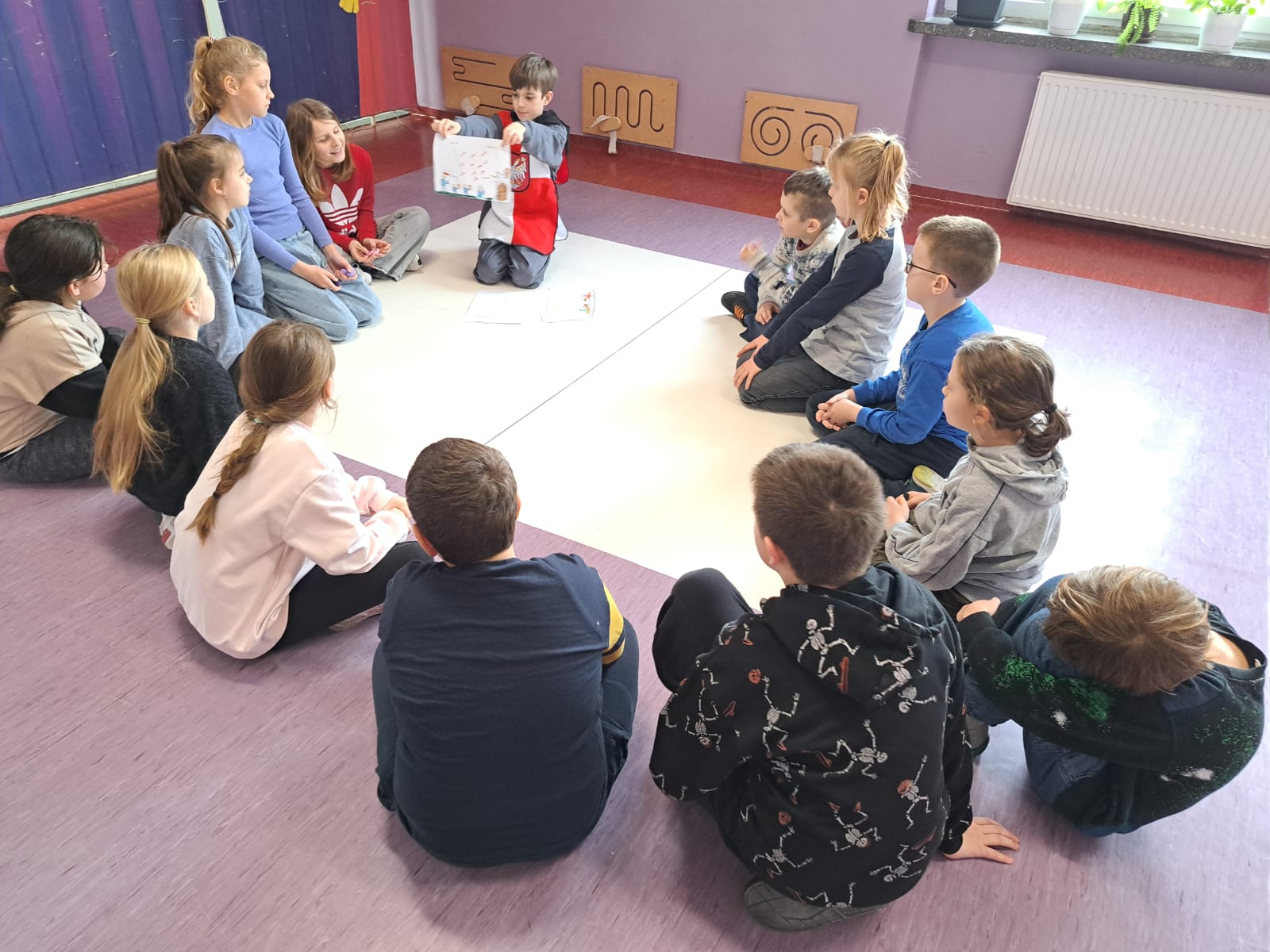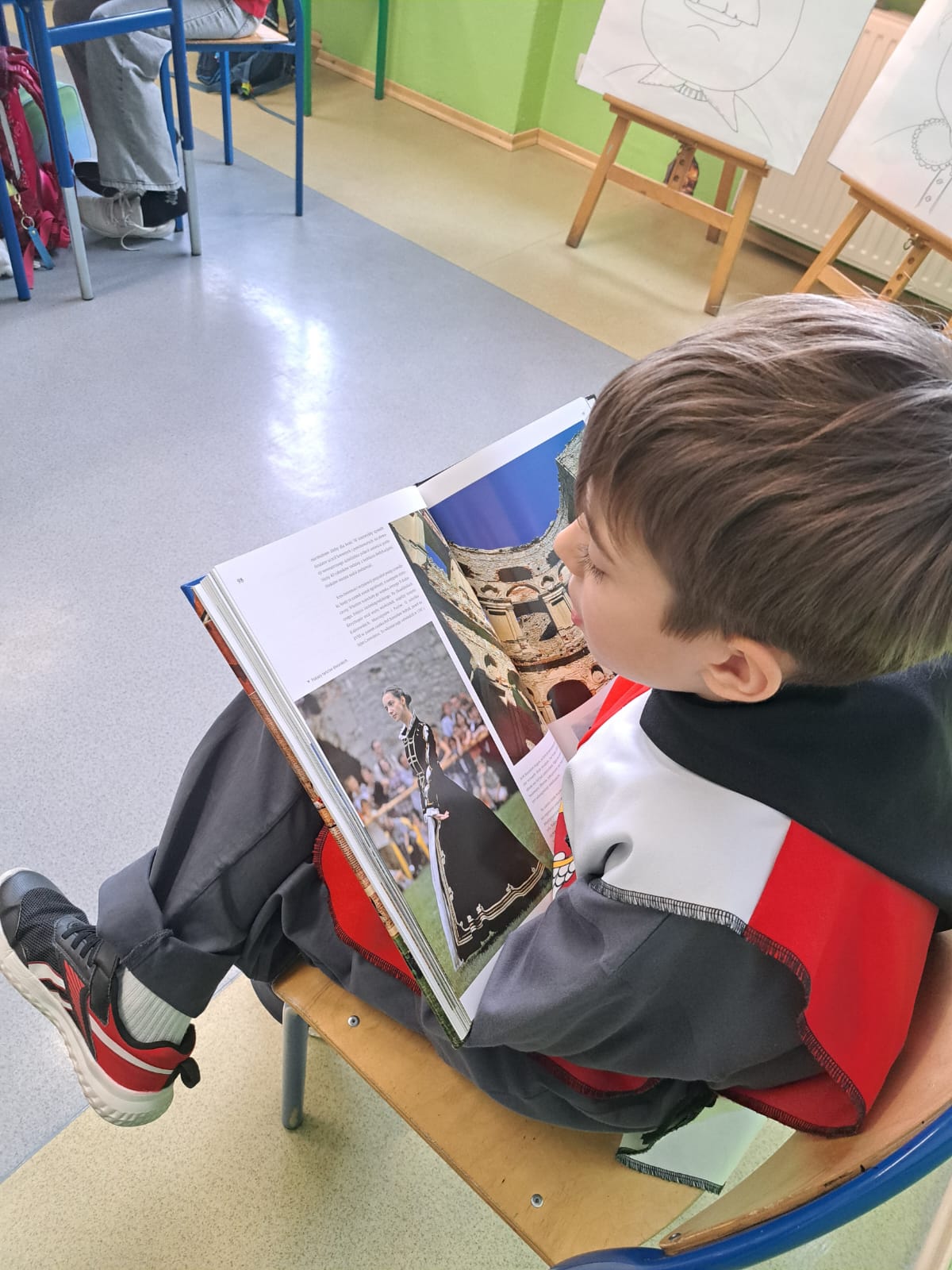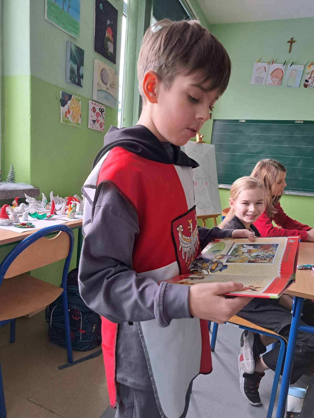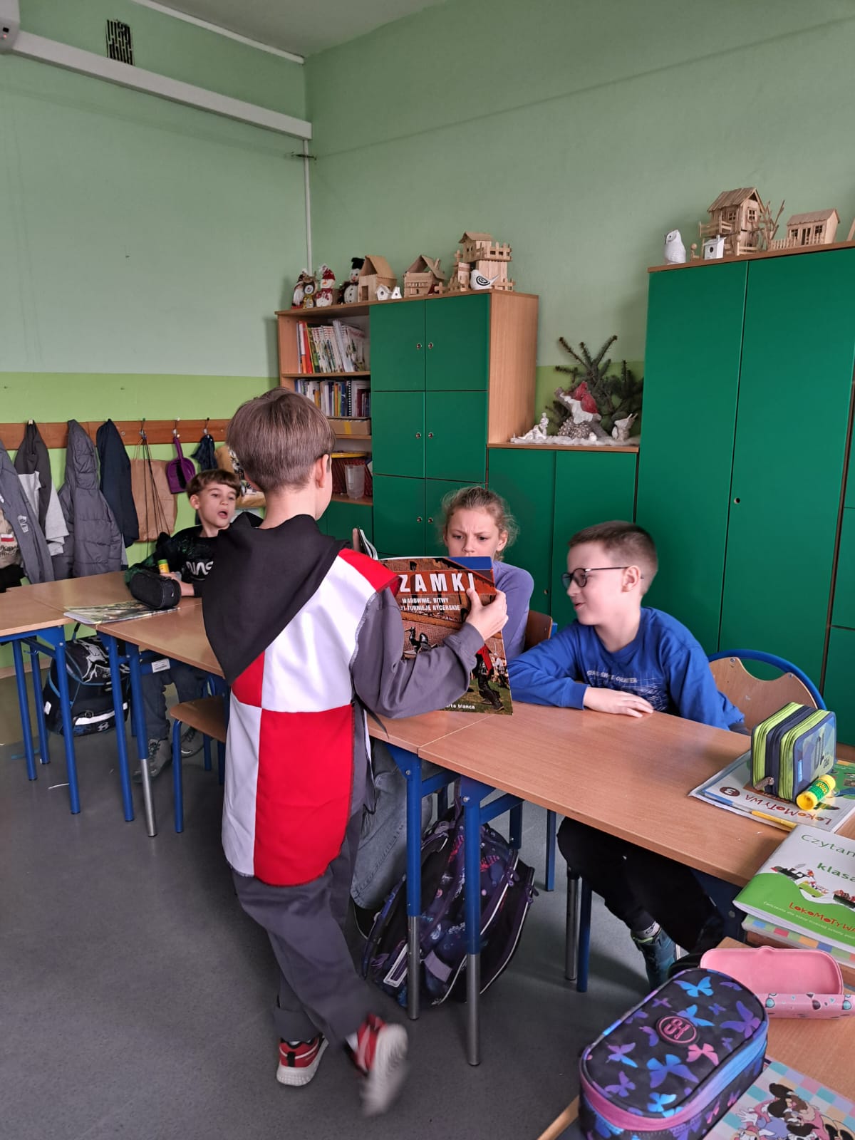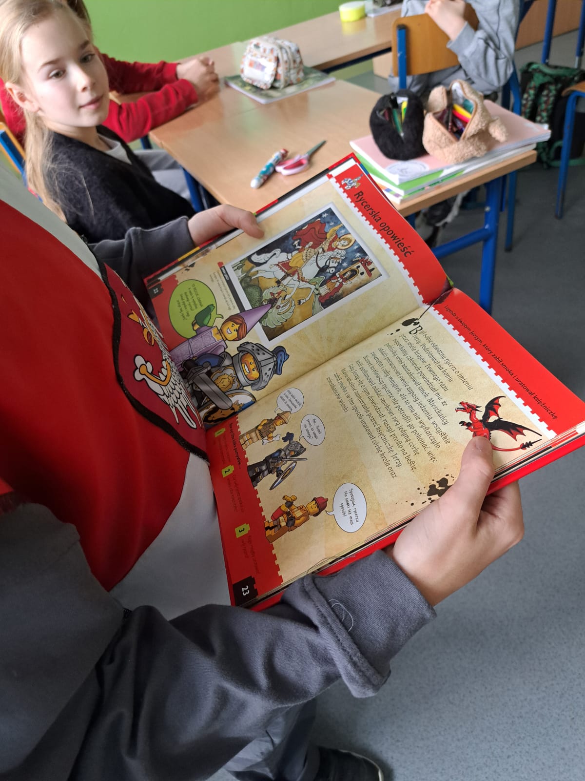 Dla urozmaicenia lekcji prowadzący przyniósł również grę „Królestwo”, czytał ciekawe historie oraz prezentował bogato zdobione ilustracje w książkach, co dodatkowo pobudziło wyobraźnię uczniów.